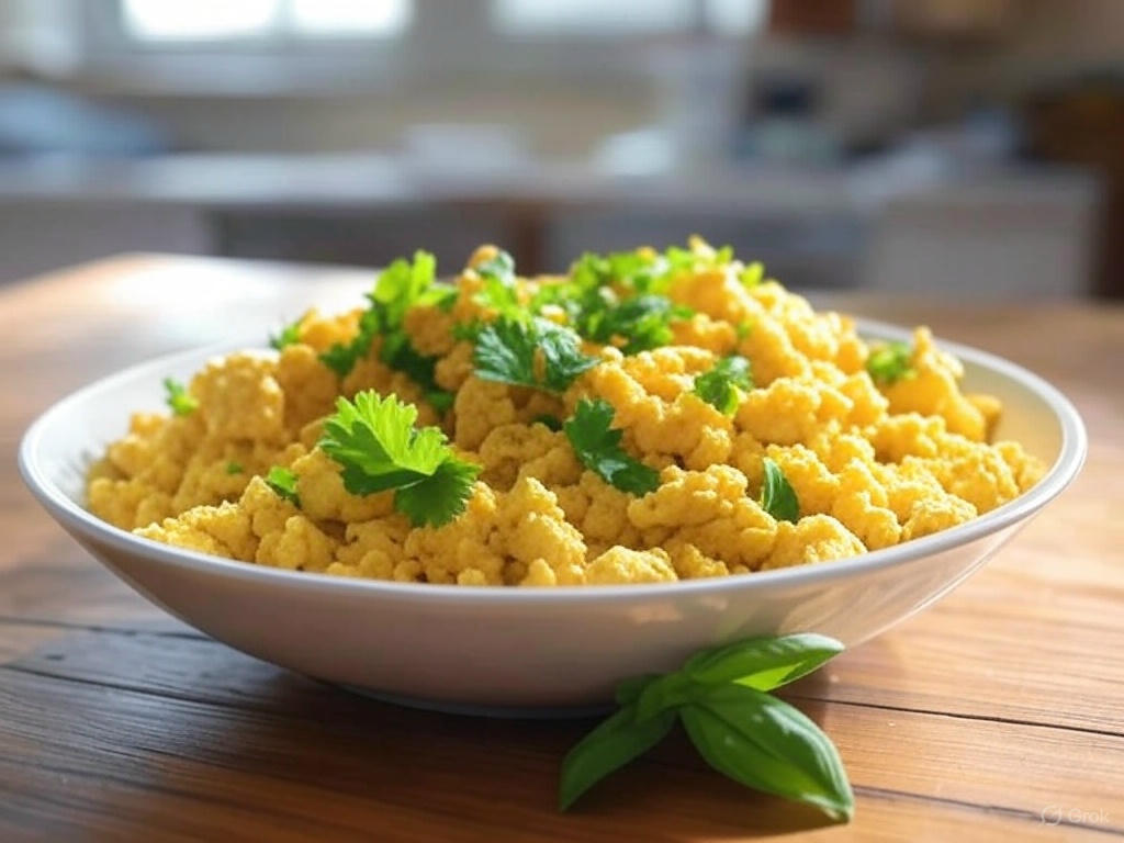 A vegan alternative to scrambled eggs, tofu scramble is versatile and packed with plant-based protein. Ingredients (Serves 2):
